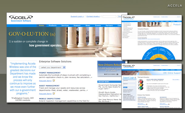 WEBSITE PROJECT: Website Redesign Team Project Brand Development Technical Lead TOOLS: Dreamweaver Flash Illustrator Photoshop VISIT: www.accela.com